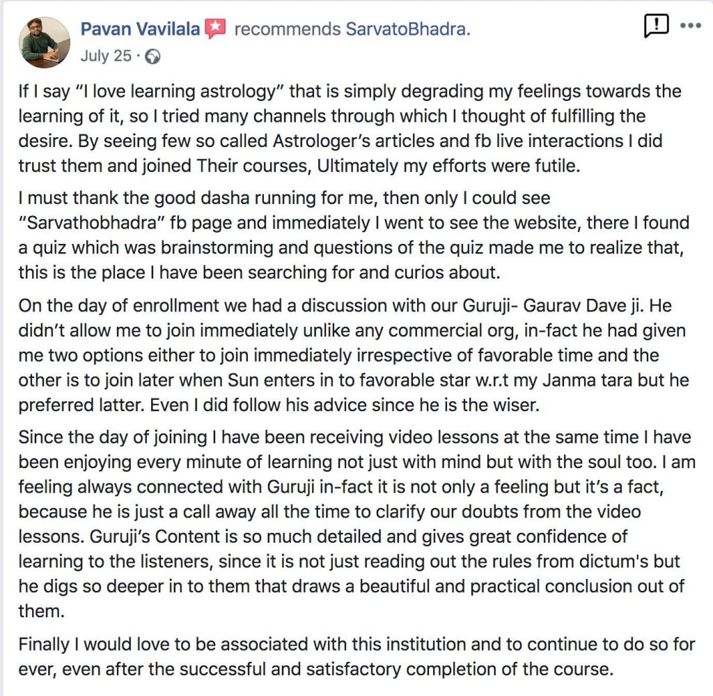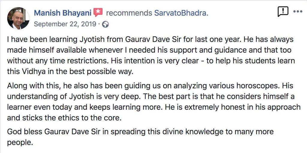 If you would like to learn Jyotish in a methodical way then please contact Gaurav Dave via email (gauravdave.gdave@gmail.com), Signal, Telegram, WhatsApp, Mobile: +33625750152 stating your interest.